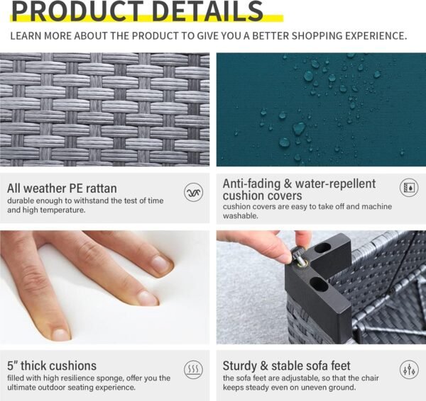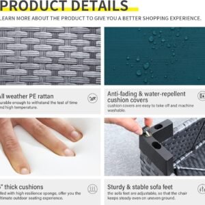 HIGH QUALITY: All-weather resistant PE wicker and strong rust-resistant steel frame consist this stylish sofa couch, durable enough to withstand the test of time and high temperature. It is an affordable alternative to high priced rattan outdoor furniture